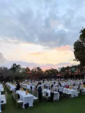 As the sky began its slow descent into hues of tangerine and lavender, Taman Bhagawan Bali transformed into a grand stage for connection and cuisine. Hosting nearly 1,000 participants, the dinner was not merely an event—it felt like a shared celebration of culture, comfort, and open-air elegance.