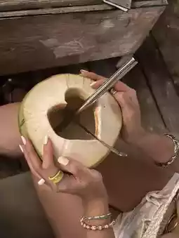 The heart-shaped carved coconut juice was so cute and lifted our spirits🥥💕