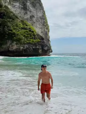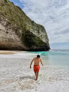 Not only does Kelingking Beach have unique limestone cliffs, it also has a long stretch of fine white sand embracing the emerald green coastline. The clear sea water, which can be seen all the way to the bottom, reflects the deep blue sky. The waves lapping against the shore, combined with the sound of the sea breeze, create a melodious natural music that dispels all the worries of everyday life.