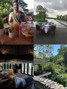 • The atmosphere is lush, tropical, and serene—emphasizing harmony with nature and rustic elegance. .
