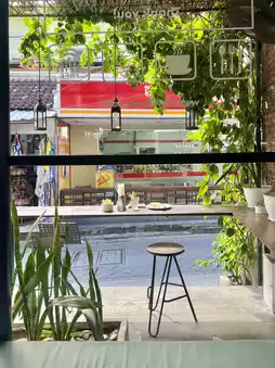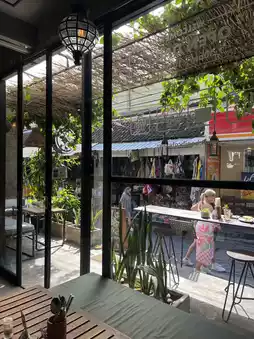 The atmosphere is cozy and modern, with a touch of Bali vibes.