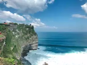 On the fifth day, we had the floating lunch we were most excited about. We quickly took photos of the food on the water and then moved it to the table to eat. We also toured the southern part of Bali and visited Uluwatu Temple. The view of the ocean from Uluwatu Temple was stunning, with vibrant colors. Although it was very hot during the day, we had a great time. I would love to visit Bali again in the future.^^