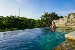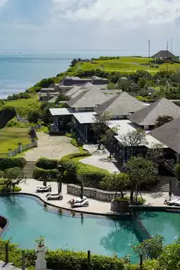 When you come to Bali, the hotel you choose determines the way you vacation. The Jumeirah brand’s first all-villa resort in Southeast Asian islands almost occupies the last prime piece of land in Uluwatu, taking nearly 10 years to complete. The design company drew inspiration from Indonesia’s last Hindu kingdom: Majapahit, creating a water palace full of regional charm. The main buildings are about two to three stories high, with sloped roofs and white-gray plaster walls, looking like a palace complex perched on a seaside cliff at first glance.