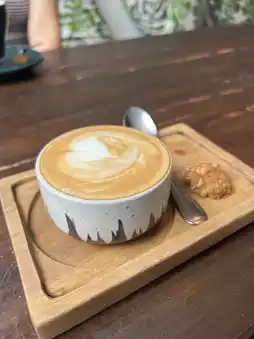 ✔️Concrete floors, plants, and wooden furniture create a comfortable yet stylish atmosphere.