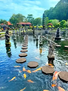 Located in the eastern part of Bali, Tirta Gangga Water Palace is a stunning garden filled with clear pools, tiered fountains, and lush greenery. Walking across its iconic stepping stones felt like entering a peaceful dream, with koi fish swimming just below my feet. The gentle sound of flowing water and the surrounding mountain views made the place even more magical. Tirta Gangga is a beautiful reminder of Bali’s charm, blending nature, art, and tranquility in one enchanting spot.