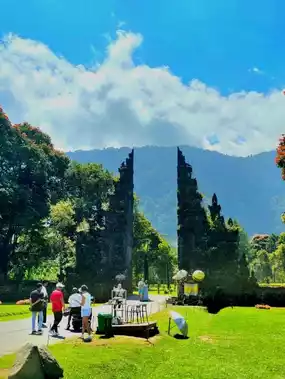 During this visit to the nearby Water Temple, I decided to stop by Bali Handara Gate as well. To enter the gate area and take photos in front of it, visitors need to purchase a ticket and receive a queue number, priced at 50,000 IDR per person. Only when the staff calls your number can you proceed to the gate for photos. While waiting, you can explore the park in front of the gate or enjoy a cup of coffee ☕️ at the nearby café. At the time, there were still 10 numbers ahead of me, and the estimated wait time was over half an hour. Not wanting to waste time, I opted to take photos from a distance, which turned out quite well. After spending about 10 minutes there, I left, treating it as a brief visit.