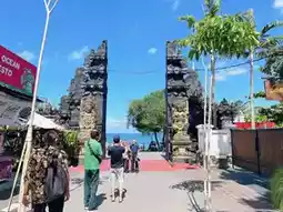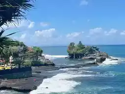 Tanah Lot Temple is located about an hour's drive from the bustling streets of Seminyak! Famous for being a temple situated in the sea, it is also one of Bali's renowned sunset spots, especially when the sunset coincides with low tide.