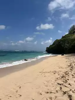 Pantai Gunung Payung offers a serene escape with its stunning natural beauty and tranquil atmosphere. Nestled between rocky cliffs and lush greenery, the beach is less crowded than many other tourist spots, making it perfect for those seeking solitude. The crystal-clear waters are ideal for swimming and snorkeling, while the fine golden sand invites relaxation. Visitors can enjoy breathtaking views of the surrounding landscape, especially during sunset, which paints the sky in vibrant hues. Overall, it's a hidden gem that provides a peaceful retreat for nature lovers and beach enthusiasts alike.