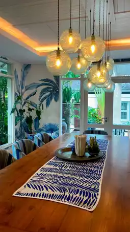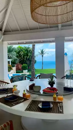The Ungasan Cliff Resort offers large, stunning villas ideal for family getaways, featuring a breathtaking view. They have a Sunday beach trip accessible via train, providing an incredible view along with restaurant, kayaking, and boating activities. In the evenings, there is live music. The newly designed, all-white and blue villas are sparkling clean. The housekeeping staff is exceptional, ensuring cleanliness daily and making you feel right at home. The team is friendly, attentive, and addresses any needs, creating a secure, relaxing, high-class atmosphere with excellent service and fresh food. I enjoyed ordering a delicious breakfast, although I wasn’t impressed with the Caesar salad with chicken, as the meat wasn't properly cooked. However, the breakfast and crab salad with ginger were fantastic. I highly recommend Devi and Mr. Arya from Lombok Island for their exceptional service, smiles, and 24-hour availability, making our stay very comfortable. Arya shared travel stories and tips, becoming like part of our family. I definitely recommend staying at The Ungasan Cliff Resort.