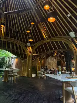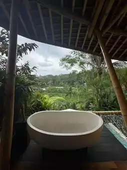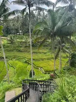 This was truly an unforgettable experience. Situated by the rice fields (all rooms offer a view of them), the resort feels like a private retreat! It's a stunning resort, unlike any other! Each room is a bamboo sky hut or villa, providing privacy and charm. The staff is incredibly friendly and attentive; when one of us fell ill, they offered great assistance! We stayed in a skytop villa, which felt magical! The hut, crafted from bamboo, even features a heated jacuzzi on the top! The dining was delightful, with both Indonesian and Western options. We enjoyed lunch and dinner at the hotel, where the staff's personal touch made a notable difference! I have a nut allergy, and all the restaurant staff were aware and took special care to ensure my meals were nut-free! The hotel also provides various activities; I participated in the lovely morning yoga session and also enjoyed a massage at their spa. We were welcomed with a refreshing drink before the massage, and it was an unparalleled experience. There's also a great gym, fully equipped with everything you need. We were met by the airport driver service, warmly greeted by an English-speaking driver who knew the region well, making for a pleasant ride! Overall, an unforgettable stay, and we wish we could have stayed longer! The hotel is beautifully designed, with every corner a sight to behold, and includes a terrace for admiring the rice fields!