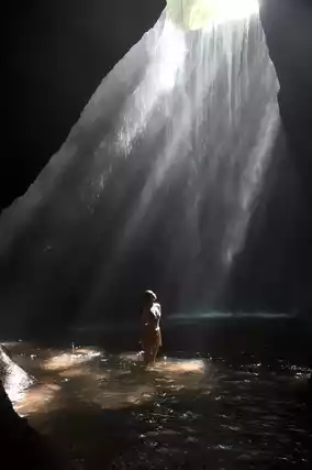 If you’re looking for unique nature experiences in Bali, head to Tukad Cepung Waterfall 🌊. This place has fewer tourists, and the walk there is beautiful and not too difficult 🚶🏻♀️. The waterfall itself is special: you can get really close, and the water falls straight from above, as if you’re standing under a giant shower 🚿. Inside the canyon, sunlight streams through the rocks ✨ — making the atmosphere magical and the photos absolutely stunning 📸