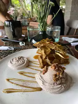 Food 🌱 : Zest Ubud specializes in vegan food and it really changed my impression on vegan food. We enjoyed every item we ordered especially the pumpkin 🎃 waffle with ice cream! The waffle 🧇 was so crispy and went really well with the ice cream. I would definitely like to visit again and explore other items on the menu.