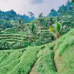 Among these, the Tegallalang Rice Terraces are particularly famous. The sight of water-filled terraced fields carved into steep mountain slopes is breathtaking, offering a serene and picturesque natural landscape 🌳. The lush greenery is incredibly soothing to the eyes 👀✨ haha.