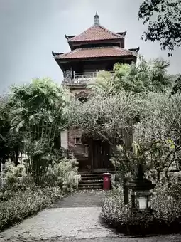 A common sight in Bali's villages and temples is stone carvings. Some of these carvings depict the faces of deities, others the forms of guardian animals. Over time, rain and moisture have nurtured green moss on their surfaces. The union of stone and moss is more than a natural coincidence, but a silent dialogue: the hard stone and the soft moss together weave a texture of time.