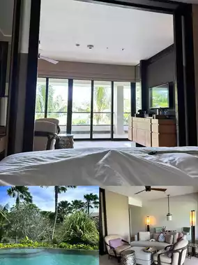 • Hidden Surprises: Minibar offers local coconut water and freshly sliced dried mango for free, tea bags include ginger and pandan tea; butlers adjust pool temperature according to weather, and in the evening deliver pandan leaf sago dessert (served in ceramic bowls); kids get wooden surfboard toys, rainforest picture books, and cartoon monkey floaties by the pool🐾.
