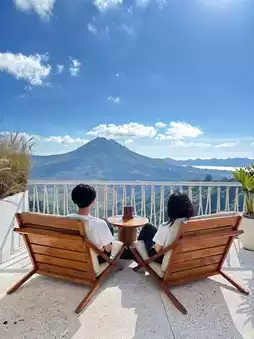 Montana Del Cafe, a highly popular scenic cafe in Bali's Kintamani Highlands, offers breathtaking views of Mount Batur and Lake Batur from its terrace seating. During sunrise or when the sea of clouds appears, the scenery is as stunning as a painting. The cafe features stylish white-themed interiors that are perfect for capturing Instagram-worthy photos. With a wide selection of coffee and brunch menu items, it's an ideal spot for girls' trips or couples' getaways. This is a must-visit scenic cafe in Bali. The friendly staff are happy to take plenty of beautiful photos for you.