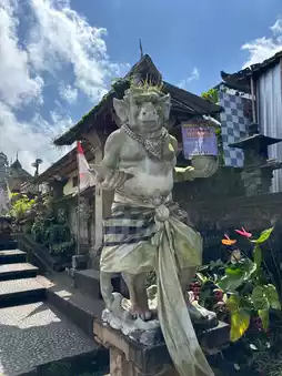 Penglipuran Traditional Village is a popular tourist spot known as the "most beautiful village" in Bali. 🌿✨ Traditional houses line both sides of the cobblestone streets, giving you a taste of Balinese life and culture. Villagers sell handmade crafts and Balinese sweets, so you can enjoy shopping while strolling around. ♡ The scenery, surrounded by flowers and greenery, is very photogenic and perfect for social media posts. 📸 This wonderful village is soothing to the soul, even just strolling around.