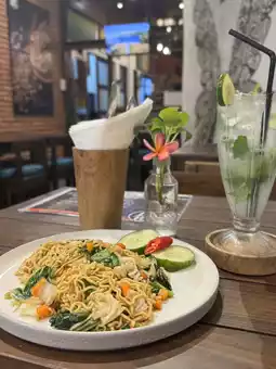 This warung has a cute atmosphere and background music at a comfortable volume, making it a quiet place to relax.
