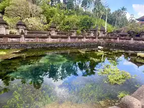 Tirta Empul Temple is a water temple located about a 30-minute drive from Ubud city. This temple is famous for allowing tourists to bathe there.