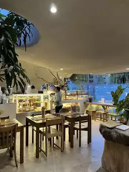 I was looking for a place to enjoy brunch and bread in Seminyak and ended up at Bread Yard. True to its name, it's a bakery and cafe, so the moment I walked in, the aroma of freshly baked bread filled the air. The interior, with its warm wood-toned interior and large windows letting in sunlight, was perfect for breakfast or lunch. The display case was filled with a variety of baked goods, including croissants, sourdough bread, muffins, and sandwiches. The menu also included pasta, salad, and brunch plates, allowing me to enjoy both a meal and dessert. I ordered a ham and cheese croissant and an iced latte. The croissant was crispy on the outside, moist on the inside, and richly buttery, offering high-quality flavor. The coffee had just the right amount of acidity, complementing the bread perfectly. 🥐☕ My companion's salad bowl was also packed with fresh vegetables and quinoa, making it a healthy meal. The prices weren't too steep for Seminyak standards, and they were reasonable considering the quantity and quality of the food. The staff were cheerful and friendly, and the food came out quickly, so there wasn't a long wait. Overall, I think this cafe is a great place to enjoy a light breakfast of coffee and pastries, or even a full brunch meal.