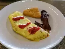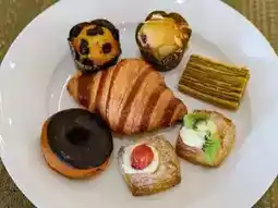 The cafe serves a buffet breakfast, offering a wide variety of international cuisine. It's one of the few hotels I've stayed in that offers salmon and sashimi for breakfast. Omelets and pasta are made to order, and the small desserts are all exquisite and delicious.