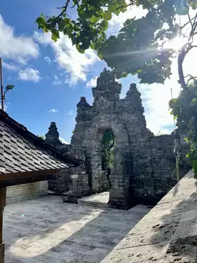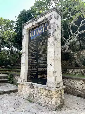 Uluwatu Temple is one of the iconic temples of Balinese Hinduism, situated on the Bukit Peninsula at the southern tip of Bali, Indonesia. When entering Uluwatu Temple, visitors are required to wear an orange sash called a 'selendang.'