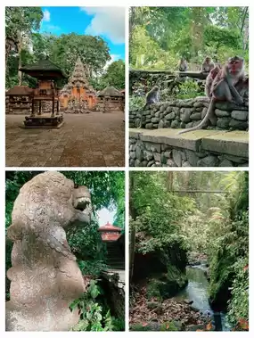 Walking through the center of Ubud, you'll come across the royal palace and traditional dance performance venues, which become lively with tourists in the evening. Just a short distance away, you'll find natural attractions like the Monkey Forest, terraced rice fields, and waterfalls, perfect for a brief trek.