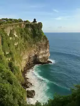 Uluwatu Temple, one of Bali's most iconic landmarks, is a Hindu temple perched on a cliff overlooking the Indian Ocean.