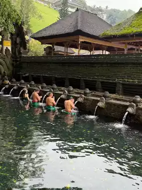 I wanted a special experience in Bali, so I went to **Pura Tirta Empul** 🙏. This temple is home to a spring, considered sacred in Balinese Hinduism. It's a popular destination for both locals and travelers from around the world who come to experience a purification ritual.