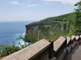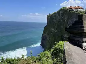 The views are the main draw: dramatic cliffs plunging into the sea, waves crashing below, and endless ocean vistas especially stunning at sunset.  Beyond scenery, Uluwatu offers cultural richness. Visitors can watch the traditional Kecak Fire Dance performed in a cliff-side amphitheater as dusk falls.  The site is also home to a mischievous colony of long-tailed macaques, adding spontaneity to any visit—though being cautious is advised.