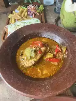The signature Bebek Timbungan (slow-cooked duck) is a must-try — crispy on the outside, tender inside, and deeply aromatic without being greasy. The Nasi Goreng (Indonesian fried rice) and Sate Ayam (chicken satay) are authentic and well-balanced, ideal for those wanting to explore local tastes in a refined setting.