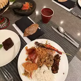 The hotel features a restaurant called Double Ikat Restaurant. A signature Indonesian dining experience at the Renaissance Bali Uluwatu Resort & Spa, Double Ikat blends the vibrant and traditional flavors of Bali and the rest of the archipelago with innovative and contemporary cooking techniques. Besides enjoying the food, you can also watch a Kecak dance performance during dinner. It's so much fun!