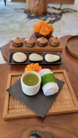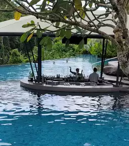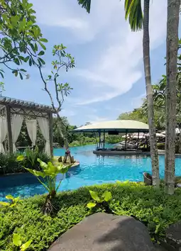 Gorgeous open and breezy lobby areas, including the bar and restaurant. The Indonesian and Mediterranean food was delicious. The fantastic infinity pool offers views over a steep cliff into a lush forest. We appreciated the swim-up bar. Our room was pleasant, featuring a large shower and reliable air conditioning. The Heavenly Spa by Westin Ubud was delightful; we participated in a prayer with incense and flowers before entering the treatment room where my feet were bathed in rose petals and peppermint water. The massage was superb and finished with tasty ginger tea, almonds, strawberries, and dark chocolate in the peaceful room.