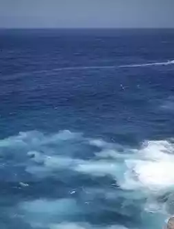 A natural circular sea arch formed by volcanic rock, with spectacular waves crashing