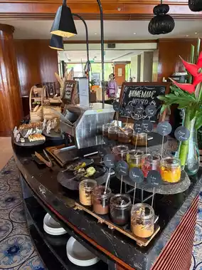 I can wholeheartedly recommend the hotel complex. It's stunning and spacious, featuring two eateries (one focused on Asian cuisine, the other Mediterranean), two pools, a botanical garden, a lovely nearby river, a petting zoo, and various lounges. There are plenty of activities available, with most included in the hotel rate, and the staff is always very courteous and helpful. We hit the gym today and tried archery, which was really enjoyable. (They also have personal fitness trainers at the gym!) For outdoor pursuits, you can inquire at the reception for options and hire a driver for 5 hours, or use the complimentary shuttle to the nearby Ubud center. However, the city was very crowded during our visit, so I’m uncertain if I would recommend it. Nonetheless, the monkey garden in Ubud was really beautiful. Five stars are well-deserved for the hotel!