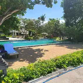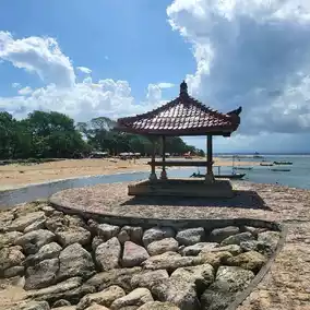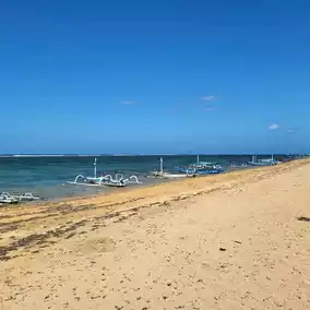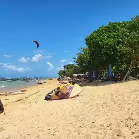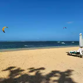 Beach in Sanur, Bali Beach, Beach view and surrounding hotel pools and people enjoying windsurfing Peaceful and uncrowded place, right here, Sanur Beach, Bali #Bali travel #Bali
