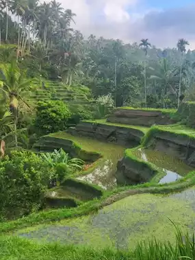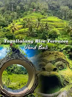 Just outside Ubud, the Tegallalang Rice Terraces captivate with their lush, tiered fields and traditional Balinese irrigation system (subak) 🌱. Walk along scenic paths, snap breathtaking photos 📸, and soak in the tranquil beauty of Bali’s countryside 💚. A must-visit for nature lovers and photographers!