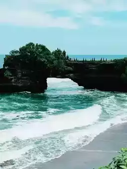 Rising majestically from the sea, Tanah Lot Temple is one of Bali’s most photographed landmarks 🏝️. Built on a rocky islet, it appears to float during high tide, creating a magical view ✨. Visit during sunset for breathtaking scenery and a peaceful spiritual vibe that captures the essence of Bali’s beauty.