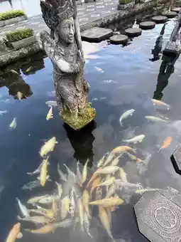 Hidden in the east of Bali, Tirta Gangga Water Palace feels like stepping into a quiet dream. Stone paths over still ponds, lotus flowers floating in the sun, and koi fish gliding just beneath your feet — everything here moves at its own calm rhythm.