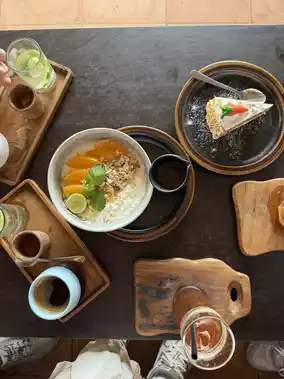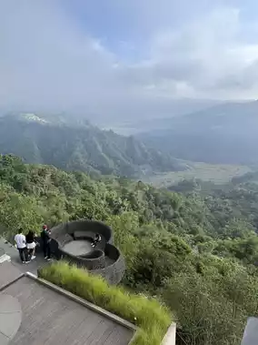 End your morning tour at the Kintamani area's hot spot, Akasa Cafe! It boasts breathtaking panoramic views of the volcano and lake. It's the perfect spot to unwind with a warm cup of coffee and a breakfast. Don't miss out on a perfect photo with the view!