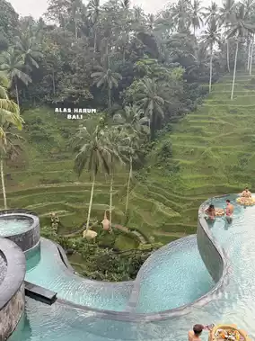 It's not just a swimming pool; it's a luxurious pool club boasting breathtaking views of the lush jungle and the Tegalalang rice terraces.