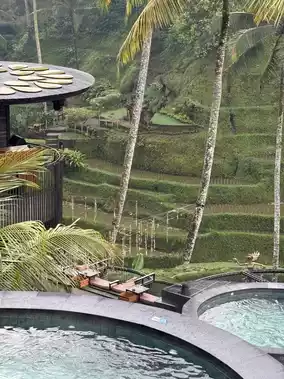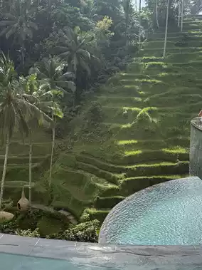 The view of the lush rice fields from the top-floor infinity pool was truly the epitome of "luxury in nature."