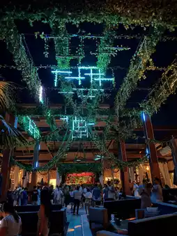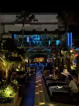 • Sun loungers, VIP cabanas, and a bar with signature cocktails 🍸