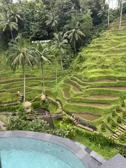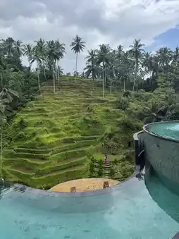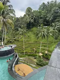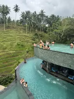 Start your day by arriving early (around 8 AM) to enjoy calm poolside moments before the crowds arrive. Dip into the multi-tiered swimming pools overlooking the iconic rice paddies—the views through misty clouds are enchanting! Must-do: stroll along the terrace edges for panoramic snaps, or lounge in a private cabana for full-on tropical luxury.
