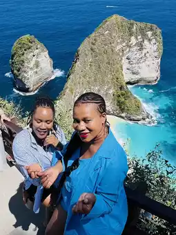 After two hours of adventures and endless sea views, we hit pause with a buffet lunch (included in the tour—sooo good! 🍛🥢). Refueled and ready, our next mission was Kelingking Beach, aka dinosaur head cliff—this place is totally surreal and packed with travelers snapping pics of those turquoise waters and crazy sea stacks.