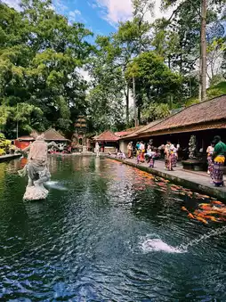 Step into serenity at Tirta Empul’s central courtyard, where centuries-old tradition meets tranquil stillness. Before or after the sacred purification ritual, pause by the koi-filled pond, where vibrant fish glide beneath lotus leaves in calm, reflective waters. Surrounded by intricate stone carvings and temple architecture, every corner whispers stories of ancient rituals and royal offerings. A meditative, mystical moment that immerses you in Bali’s spiritual heritage—rich in culture yet gentle on your wallet. Perfect for travelers seeking peace, reflection, and Instagram-worthy tranquility.