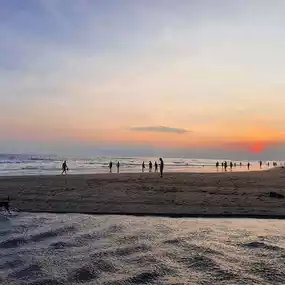 It's nice to see the sunset at sunset. It's fun to watch surfers and people riding motorbikes,