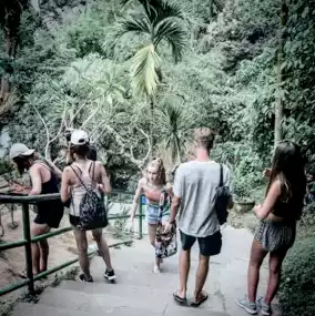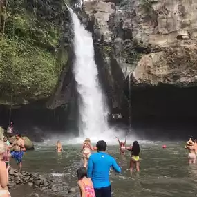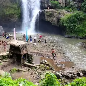 Tegenungan Waterfall is a waterfall in Bali, Indonesia. It is located at the village of Tegenungan Kemenuh, in the Gianyar Regency, north from the capital Denpasar and close to the Balinese artist village of Ubud. The waterfall is isolated but has become a popular tourist attraction. It is also one of the most popular waterfalls in Bali so the pathway is well maintained and very safe to explore.