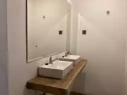 Each room has a toilet, shower, sink, and a locker for each person. There was a small luggage rack and an outlet next to the head.