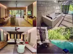 The spectacular view from the lobby, the luxurious villa rooms with pool, the tropical infinity pool and the beach